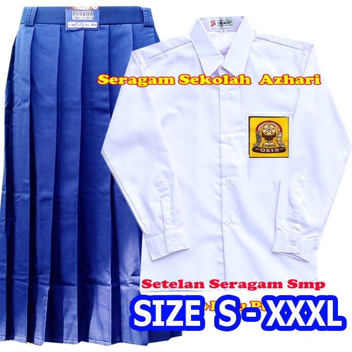 Harga Setelan Seragam Sekolah SMP Perempuan Biru Putih Rok Rempel-Stelan Seragam SMP Cewek-Seragam SMP Lengan Panjang-Seragam Sekolah SMP